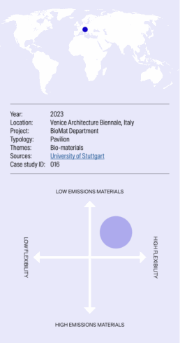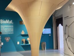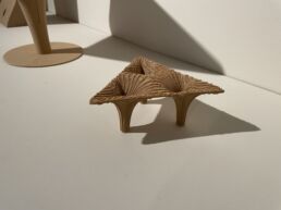The project explores 3D printing in combination with annually renewable natural fibres, focusing on material development, structural analysis, fabrication methods and the application of this material-based technique to architectural design. Specifically, the study investigates the use of 3D printed natural fibre reinforced filaments in different architectural contexts, tested through a series of demonstrators addressing different design challenges. The structure was fabricated using a lightweight short fibre filament composed of wood fibres and bio-based PLA. As the material was developed specifically for this project, extensive testing was carried out to inform the digital simulations and to ensure the integrity of the structure. These tests have been instrumental in refining the printing process and validating the performance of the material for architectural applications. The project lays the groundwork for the integration of natural fibre-based 3D printing in construction.