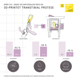 - 3D-print af proteser bidrager til en væsentlig besparelse på både CO2, vand- og materialeforbrug. Yderligere oplysninger findes i livscyklusrapporten på www.bjn.dk/viden.