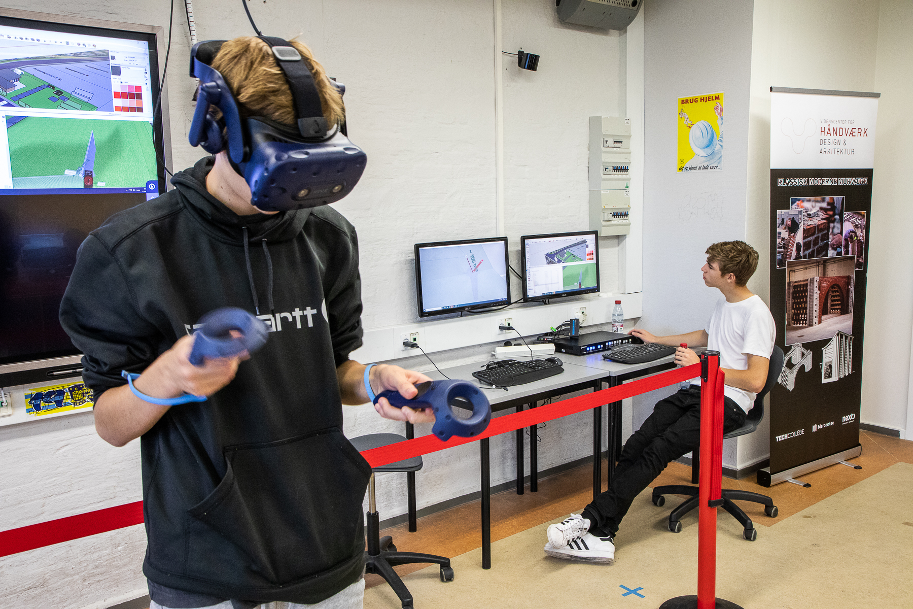 His classmate, Claus Hønborg, has only just been introduced to VR, but already uses it instinctively and quickly. He says about the possibilities of the 3D lab: “It’s better than sitting and drawing on a computer. You can see what it’s like, and what it feels like to be in there.”